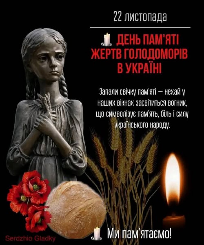 Щороку в четверту суботу листопада Україна вшановує пам’ять жертв Голодомору 1932–1933 років і масових штучних голодів 1921–1923 і 1946–1947 років. Ці трагічні сторінки  нашої  історії залишили глибокі рани в серці народу та нагадують про ціну боротьби за незалежність. У 1932-1933 роках комуністичний тоталітарний  режим здійснив спланований злочин – Голодомор – геноцид українського народу. Метою було знищення українців як нації.