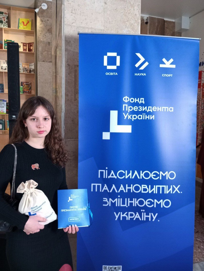 Поспішаємо поділитися неймовірною новиною. Курілова Валерія, учениця 9-В класу нашого ліцею, серед 94 юних талантів, переможців міжнародних та всеукраїнських олімпіад, які отримали премії Президента України. Нагородження відбулося 5 грудня 2025 року в Музеї науки м.Києва, який став місцем концентрації інтелекту з усіх куточків нашої країни. Премії переможцям вручала Радниця – уповноважена Президента України з питань Фонду Президента України з підтримки освіти, науки та спорту Ольга Будник.