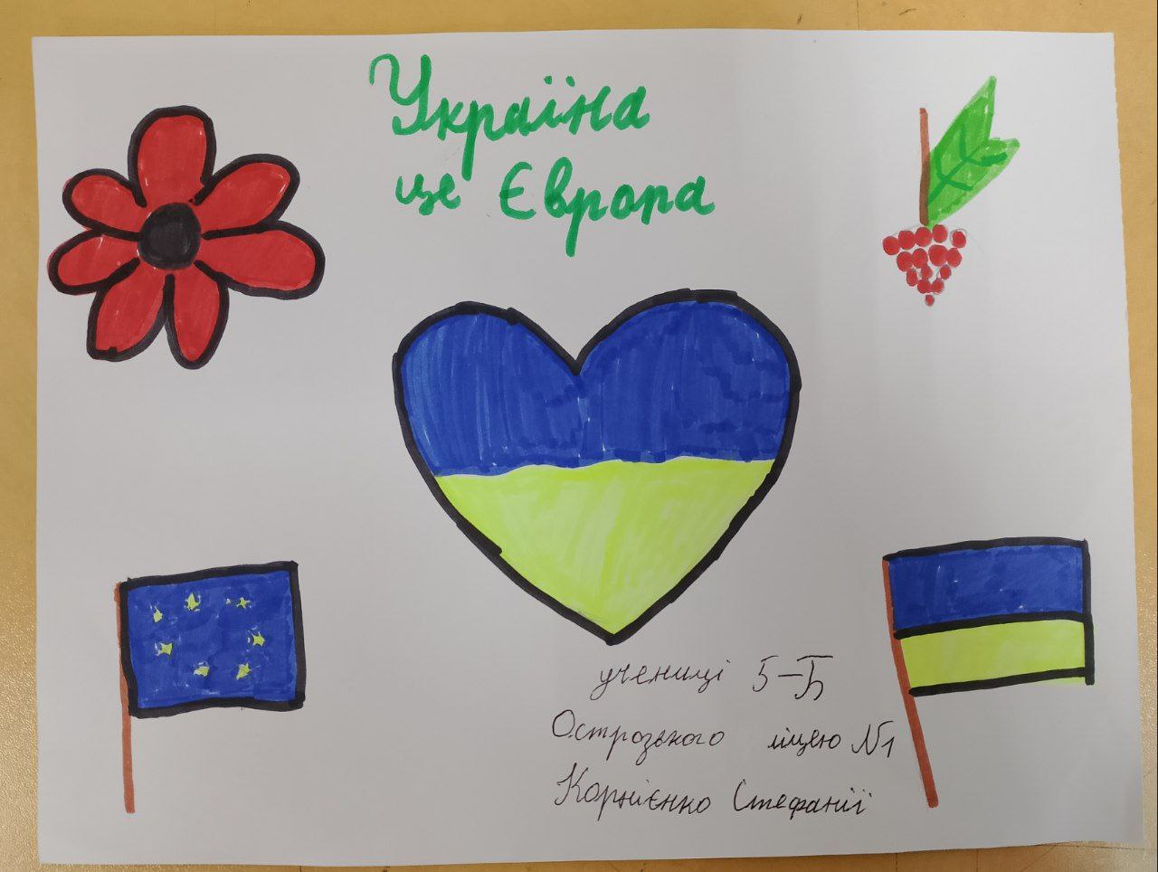 З нагоди Дня Європи у нашому ліцеї пройшов конкурс малюнків «Україна – це Європа». Дякуємо ліцеїстам за активну участь у конкурсі: Москалюк Дарині, Демчуку Владиславу, Бащуку Марку, Добруцькій Тетяні, Камінській Вікторії, Тарасенко Олесі, Мазурик Мілані, Цапіну Марку, Завадському Давиду, Корнієнко Стефанії, Гаврилюк Вікторія, Бабчуку Михайлові. Бажаємо перемоги у міському етапі. Ви – молодці!