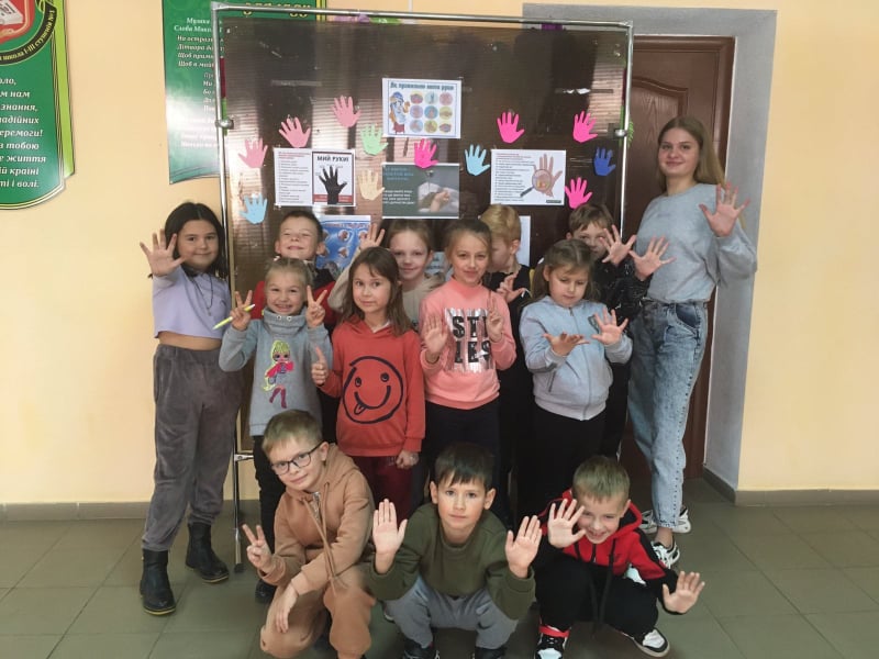 Щорічно, 15 жовтня, відзначається Всесвітній день чистих рук. Метою якого є показати людям, як просте миття рук водою з милом допомагає ефективно боротися з безліччю інфекційних захворювань. Медичною сестрою, спільно із членами санпосту «Турбота» для учнів 2-х та 3-х класів було проведено цікаву вікторину «Чистота - запорука здоров’я». Під час якої школярі не лише вчилися як правильно мити руки, але й стали учасниками цікавих дослідів: як мило бореться з мікробами та як мікроби передаються через наші брудні руки.