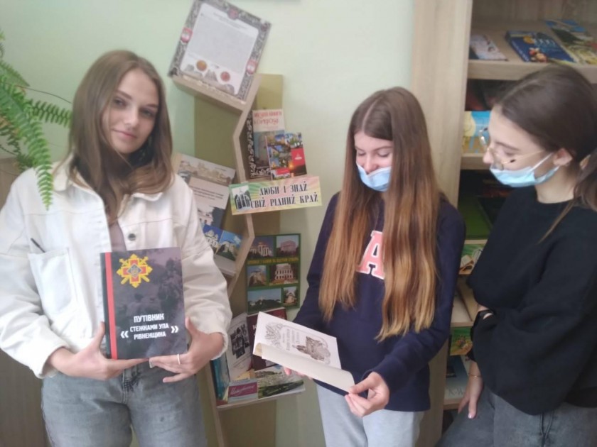 Розпочався місячник радіолінійкою та інформаційною хвилинкою біля книжкової виставки «Люби і знай свій рідний край». Учні 8 –их класів здійснили мандрівку у давнину, переглянувши історичний календар «Острозький жовтень в об’єктиві історії».