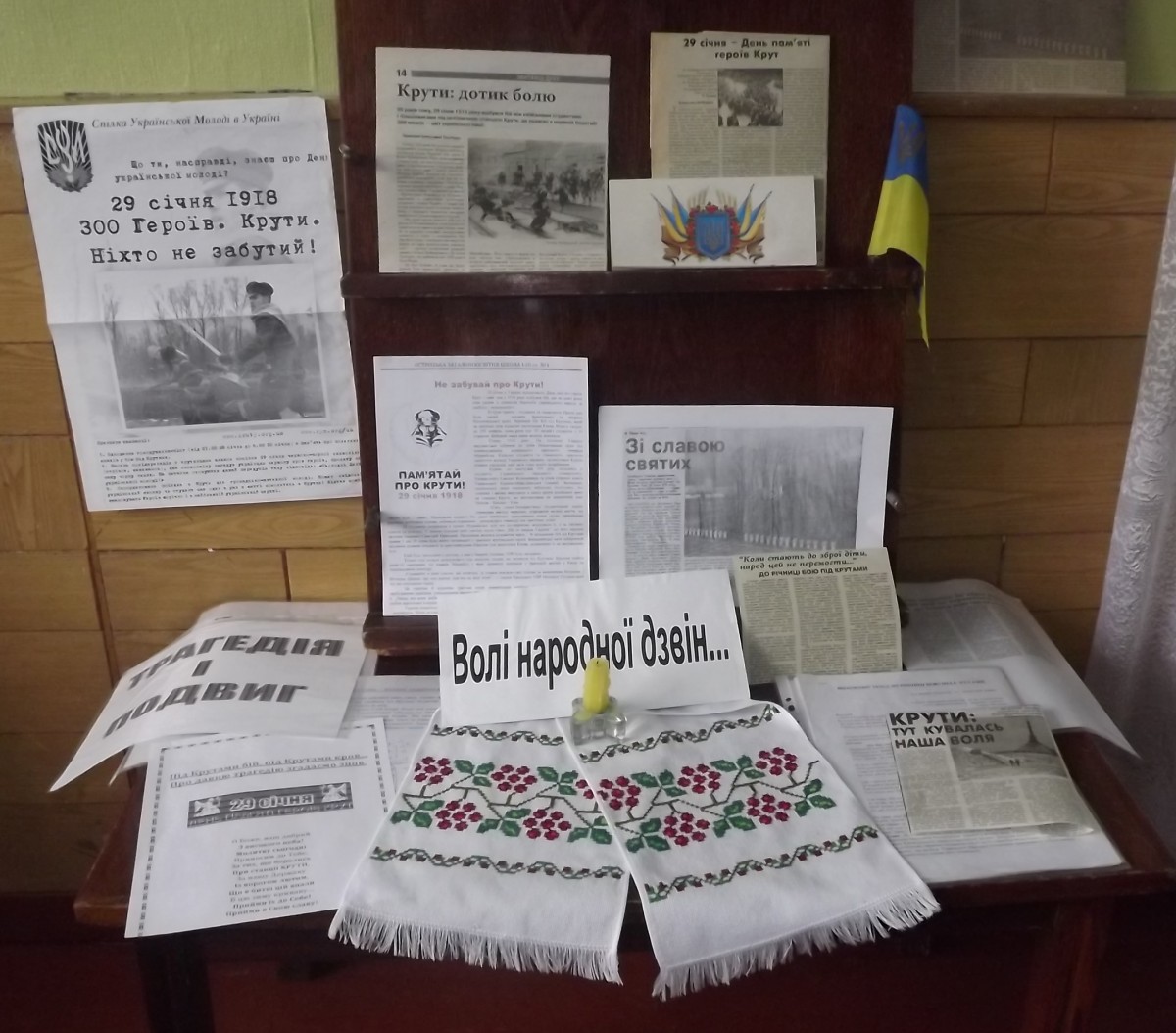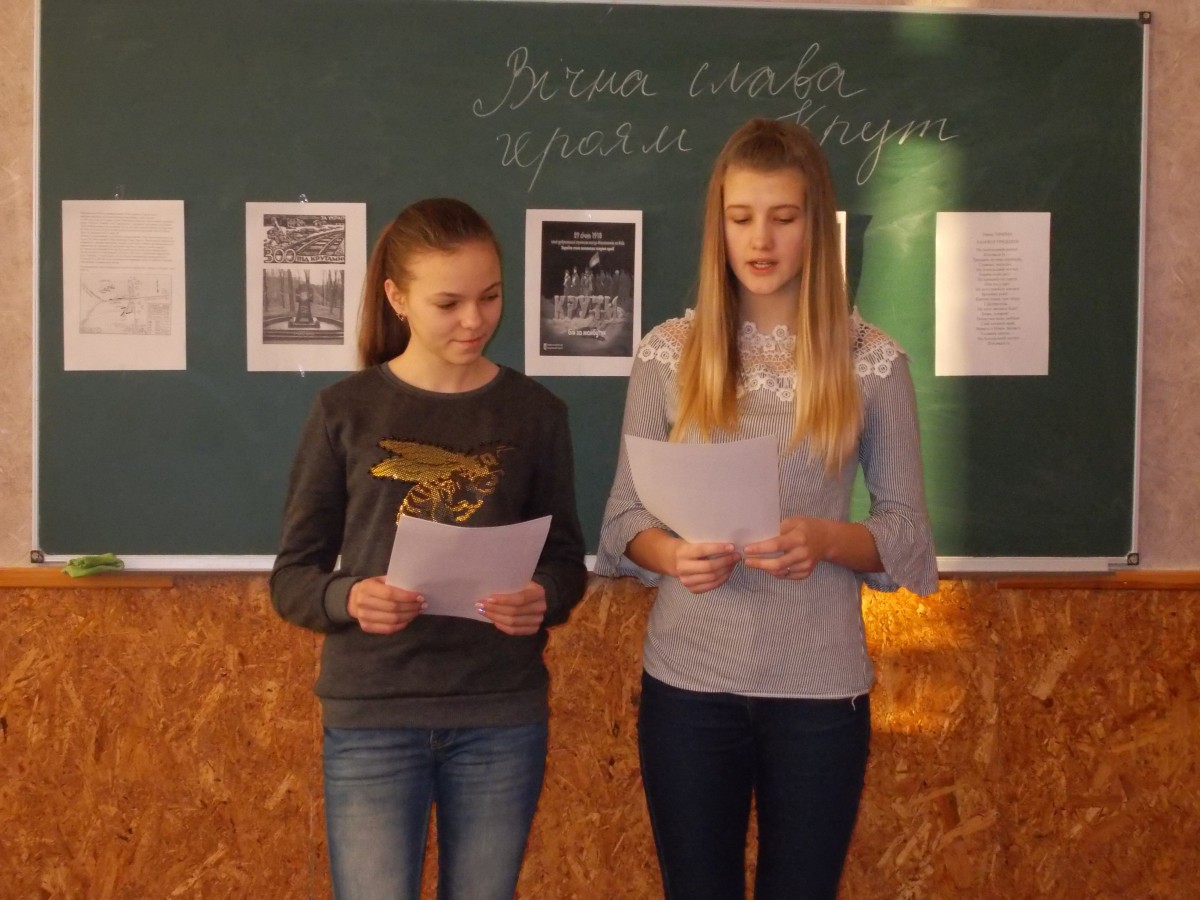 З метою вшанування пам’яті захисників України, в школі 29 січня, було проведено ряд заходів. Членами центру учнівського самоврядування «МАКСИМУМ» оформлено інформаційний стенд «Крути: життя віддане за Україну» та проведено радіогазету «Цей день в історії України». У шкільній бібліотеці оформлено виставку літератури на тему «Волі народної дзвін». Вчителями історії оформлено інформаційний стенд «Крути: сторінки історії», проведено урок-реквієм для учнів 9-их класів «На Аскольдовій могилі поховали їх» та урок історичної пам’яті «Вічна слава героям Крут» (8-А клас). Класними керівниками 1-11 класів проведено бесіди по класах: «Бій під Крутами, що то було». «Згадаймо юність, що згоріла в Крутах», «Є пам'ять, якій не буде кінця», «Уроки історії під Крутами», «Понад Крутами вічність у сурми сурмить», «29 січня – День пам’яті героїв, що полягли під Крутами», «Крути – символ національної честі», «Хай вічно горить вогонь пам’яті», «Нас тут триста, як скло, товариства лягло», «Крути – наш подвиг і біль», «На грані двох тисячоліть чорніє Хрест у білім полі...» «Крути. Пам’ятаємо про безсмертний подвиг» та інші.