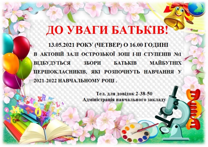 ДО УВАГИ батьків майбутніх першокласників!!!