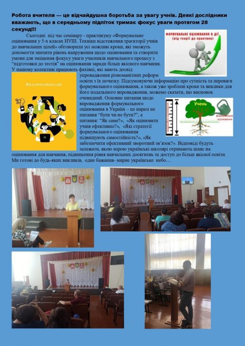 «Формувальне оцінювання в 5-х класах НУШ. Техніка відстеження траєкторії учнів до навчальних цілей»
