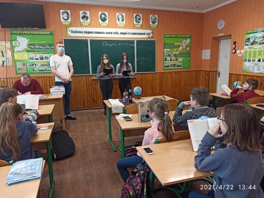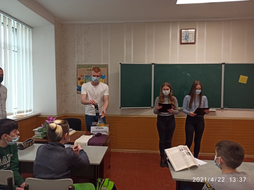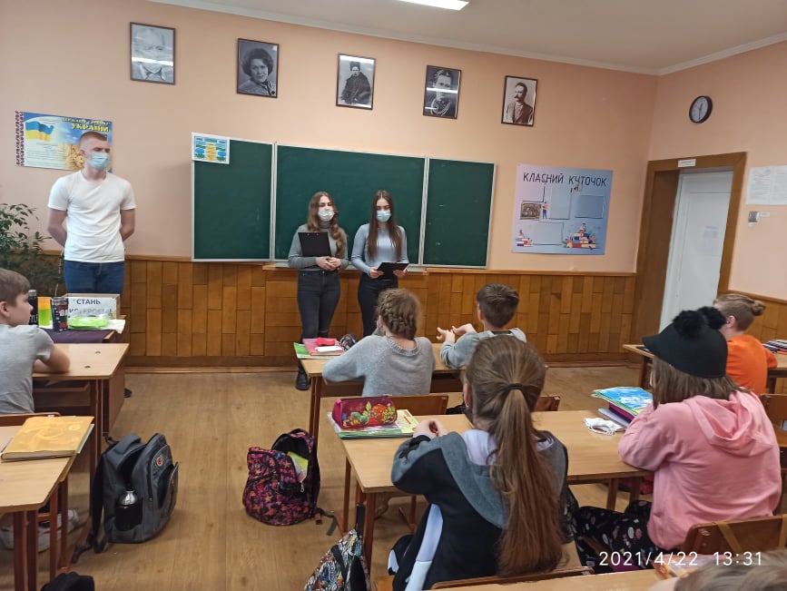 22 квітня всі жителі планети відзначають Міжнародний День Землі, покликаний об'єднати людей в справі захисту навколишнього середовища, нагадати про те, що планета, яка дарувала нам життя, унікальна й має потребу в турботі й захисті. З нагоди Дня Землі членами учнівського самоврядування «МАКСИМУМ», для учнів 5-8 класів проведено виступ агітбригади «Стань екогероєм!». Школярі обговорили види екологічних проблем та дізналися декілька дієвих лайфхаків, як стати більш екодружнім.