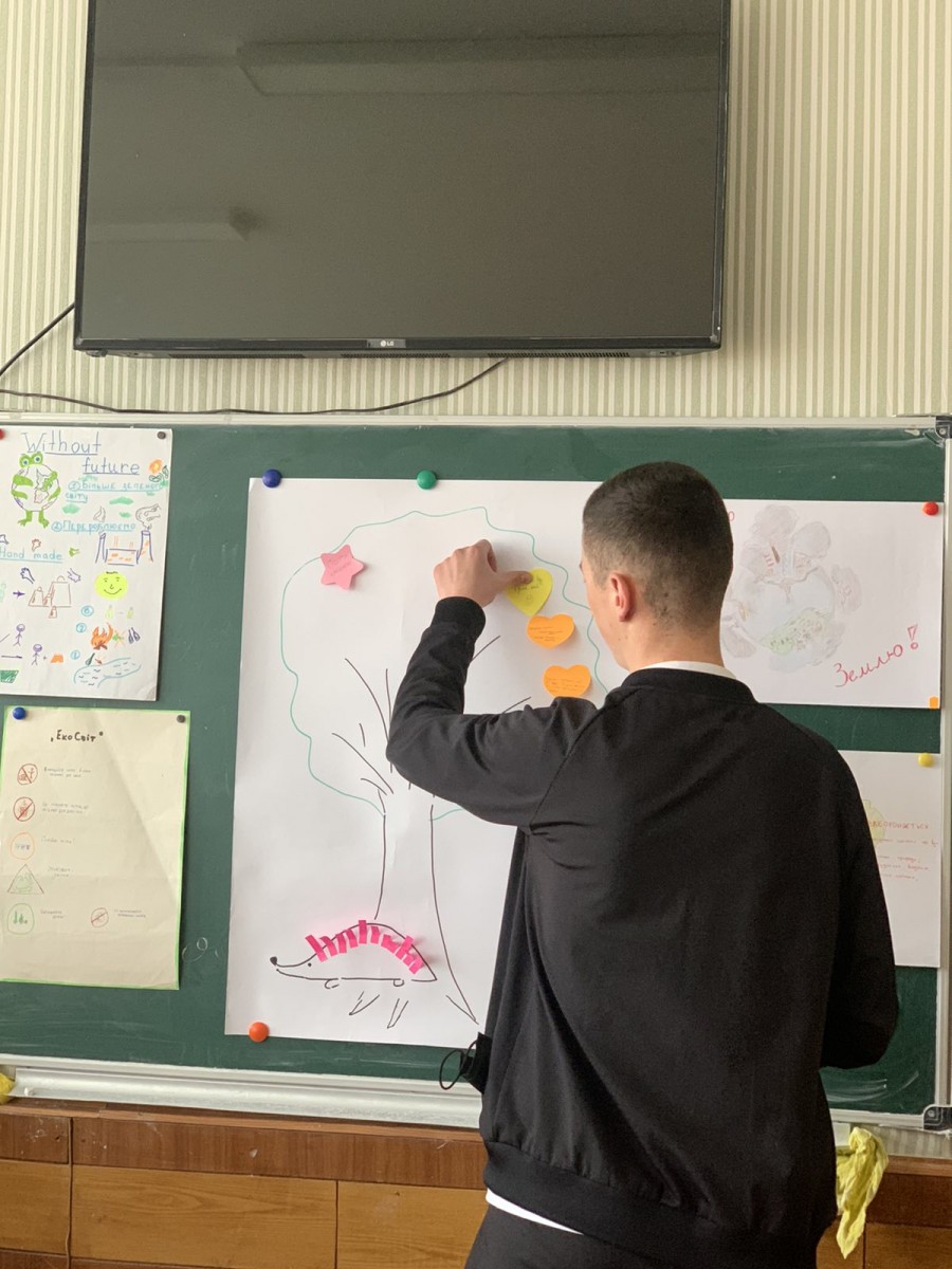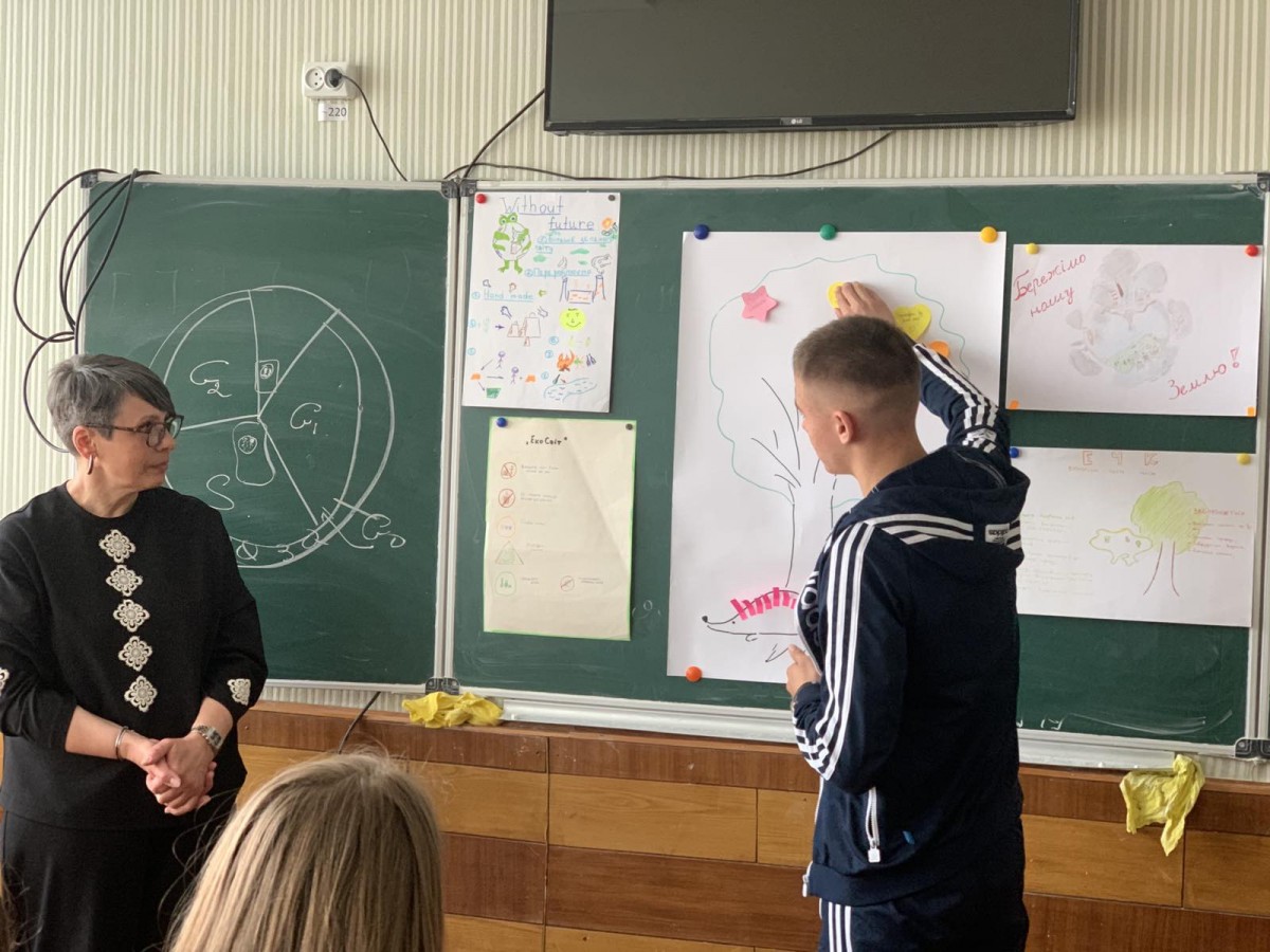 Старшокласники легко і просто у ході інтерактиву склали дерево рішень для розв’язання локальних екологічних проблем. Учнями 10 – Б класу Просяником О. та Манелюком О. презентовано екологічний проєкт «Енергозбереження в оселях українців» і доведено, що оселя українців - це сакральний генетичний код нації.
