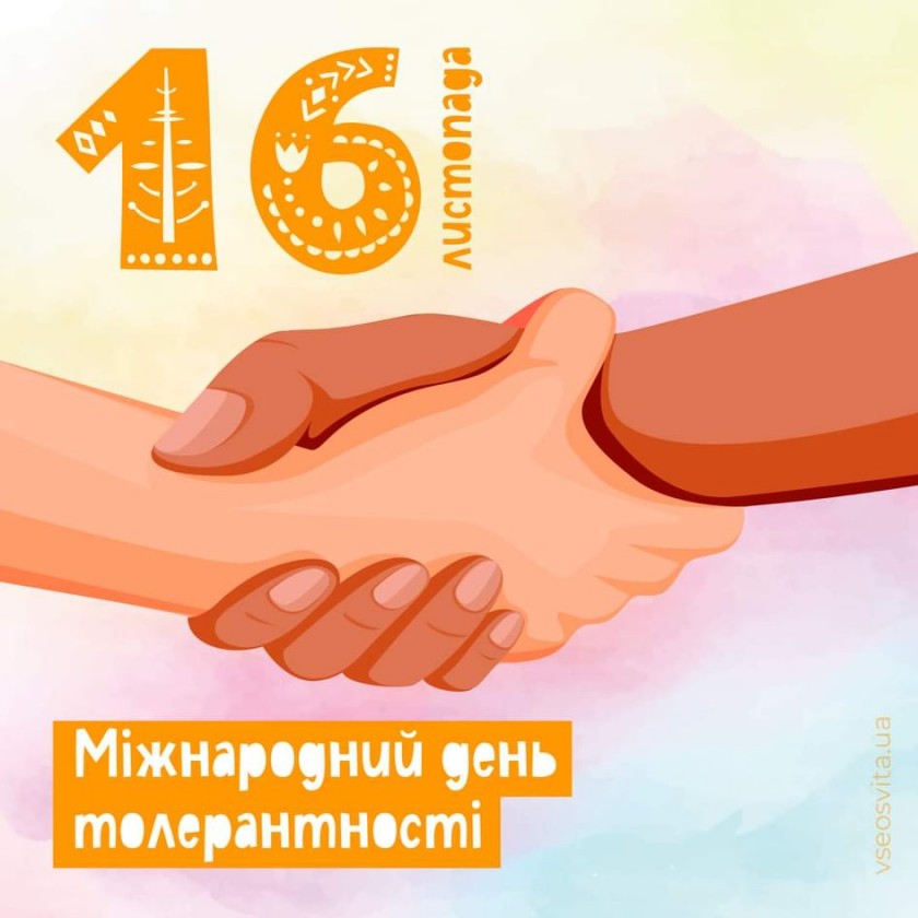 Міжнаро́дний день толера́нтності — свято, яке відзначається 16 листопада в усьому світі. Його запровадили у 1995 році за рішенням ЮНЕСКО. Саме цього дня ухвалили Декларацію принципів терпимості. У ній йдеться про рівність усіх людей, незалежно від їхнього віросповіданн, етносу або кольору шкіри. Ці принципи закріпили у Загальній декларації прав людини, що проголошує неприйняття усіх форм дискримінації, недопущення геноциду і покарання за нього.