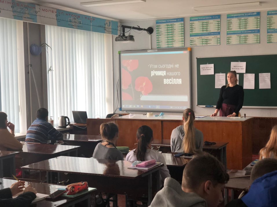 Педагогом-організатором Чумак Л.В. з нагоди Міжнародного дня боротьби за ліквідацію насильства щодо жінок, для учнів 11 класів проведено бесіду «Насильству немає виправдання». Учні переглянули тематичні відеоролики, обговорили види насильства та методи боротьби з ними. По завершенню бесіди учні долучилися до акції «Біла стрічка», яка є символом боротьби проти всіх видів насильства над жінками.