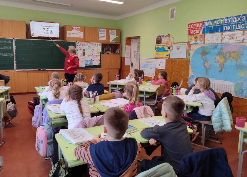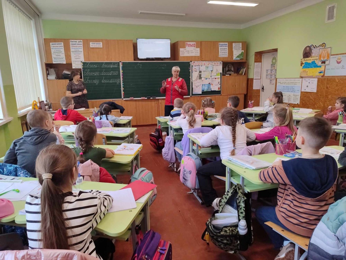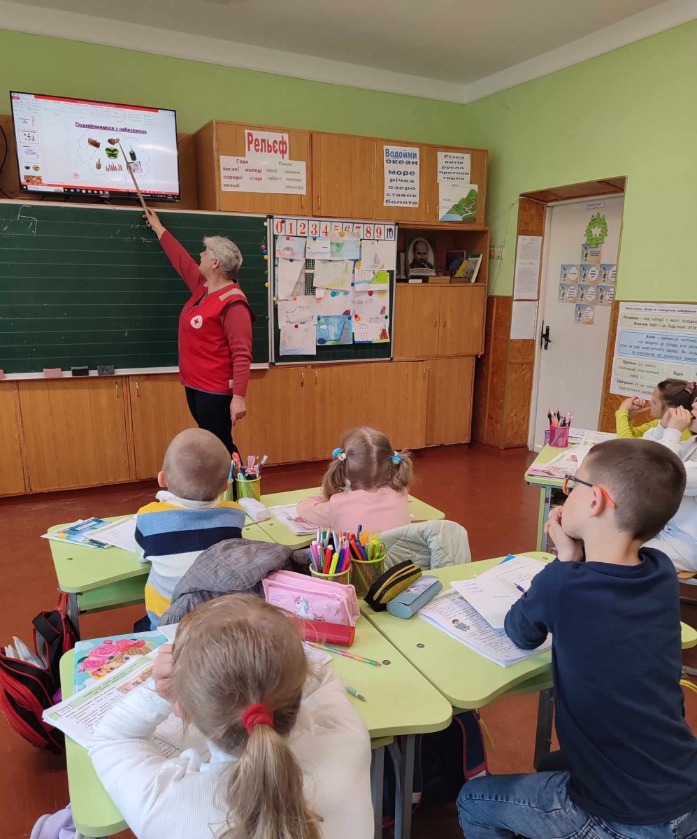 Сьогодні, 15 квітня, до учнів 2-В класу завітала представник Острозької організації Товариства Червоного Хреста України, яка провела для здобувачів освіти інформаційну бесіду з мінної небезпеки. Школярам розповіли, що таке вибухонебезпечні предмети та які загрози вони несуть. Ознайомили з інформацією з таких питань: «Види небезпечних місць», «Ідентифікація небезпечних місць», «Небезпечна поведінка», «Алгоритм безпечної поведінки».