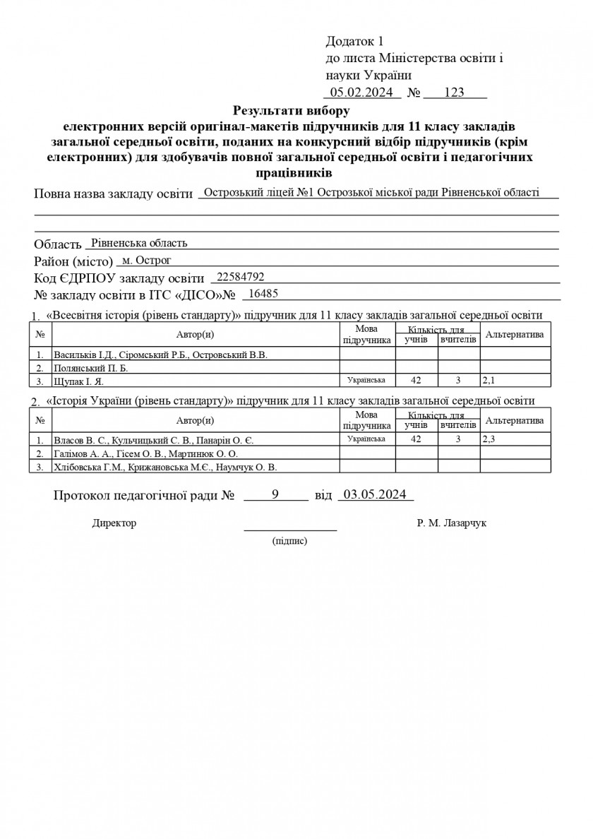 Результати вибору електронних версій оригінал-макетів підручників для 11 класу
