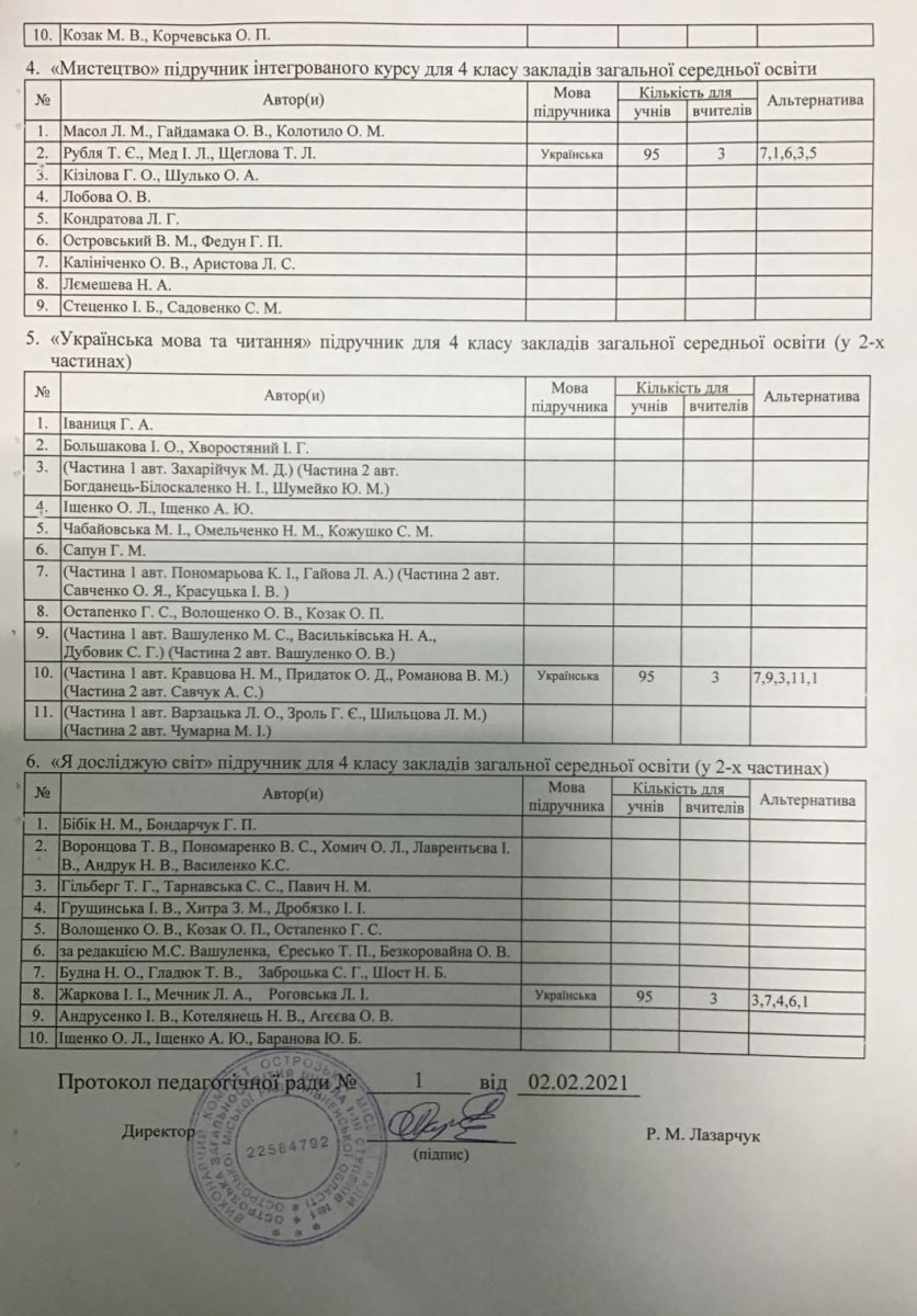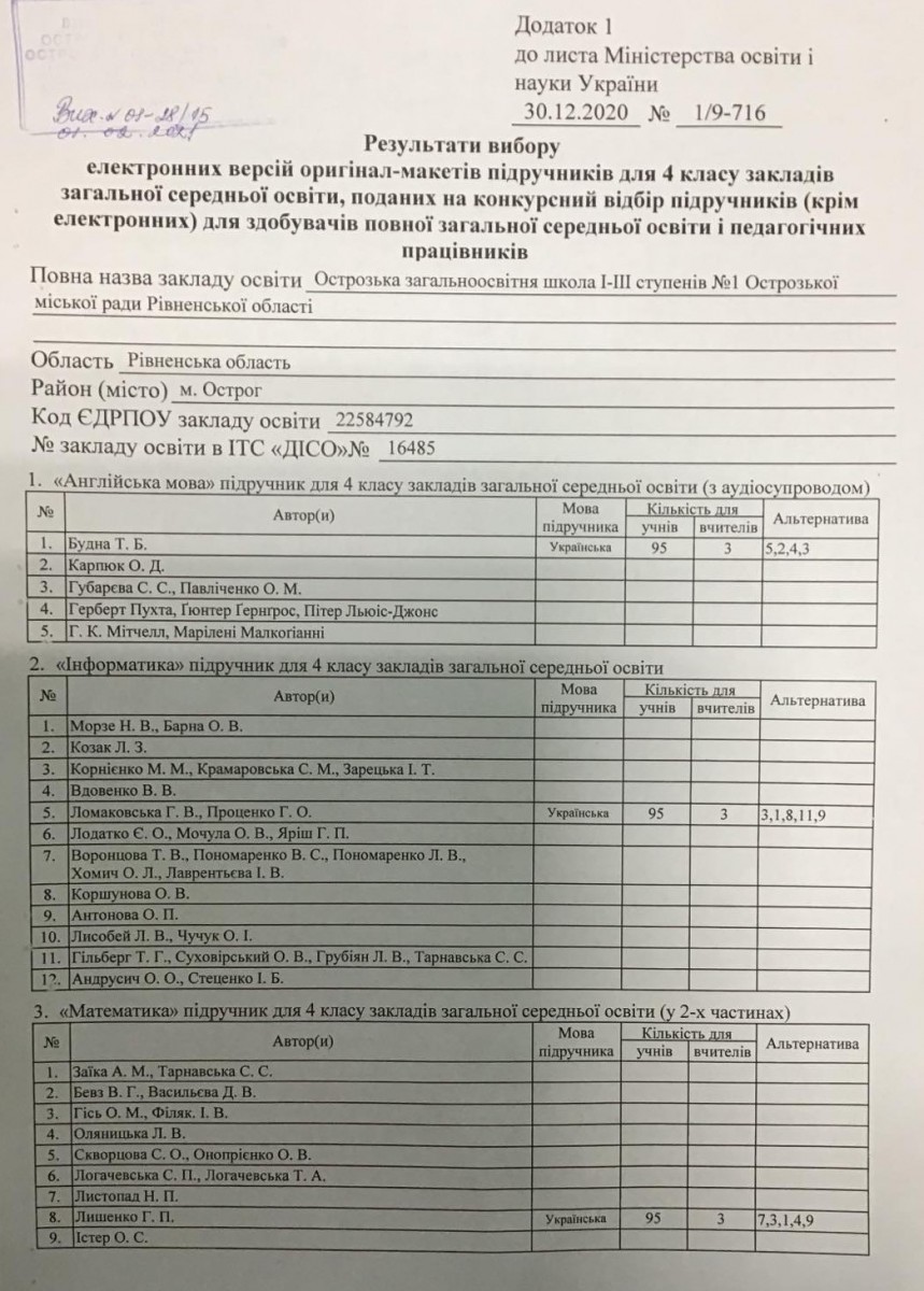 Результати вибору електронних версій оригінал-макетів підручників для 4 класів на конкурсний відбір підручників