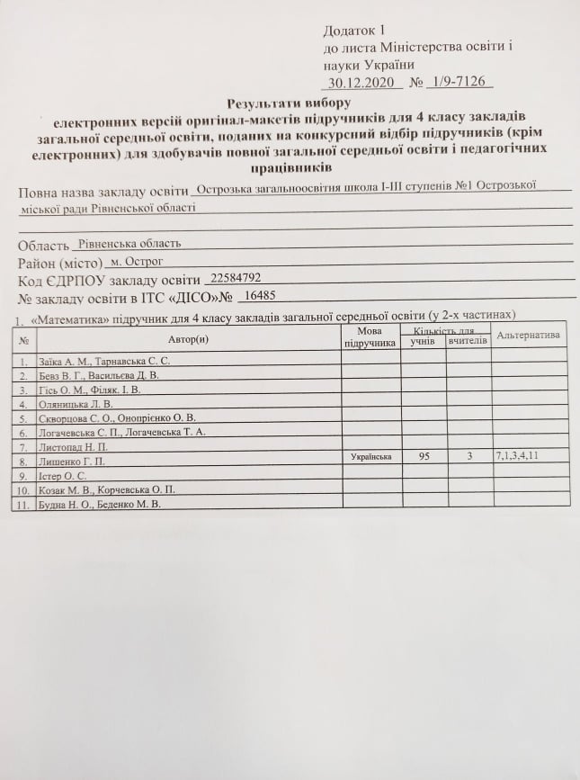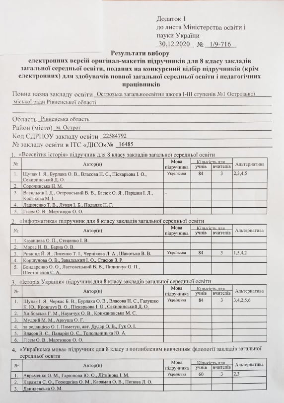 Результати вибору й електронних версій оригінал-макетів підручників для 4,8 класів закладів загальної середньої освіти, поданих на конкурсний відбір підручників (крім електронних) для здобувачів повної загальної середньої освіти і педагогічних працівників