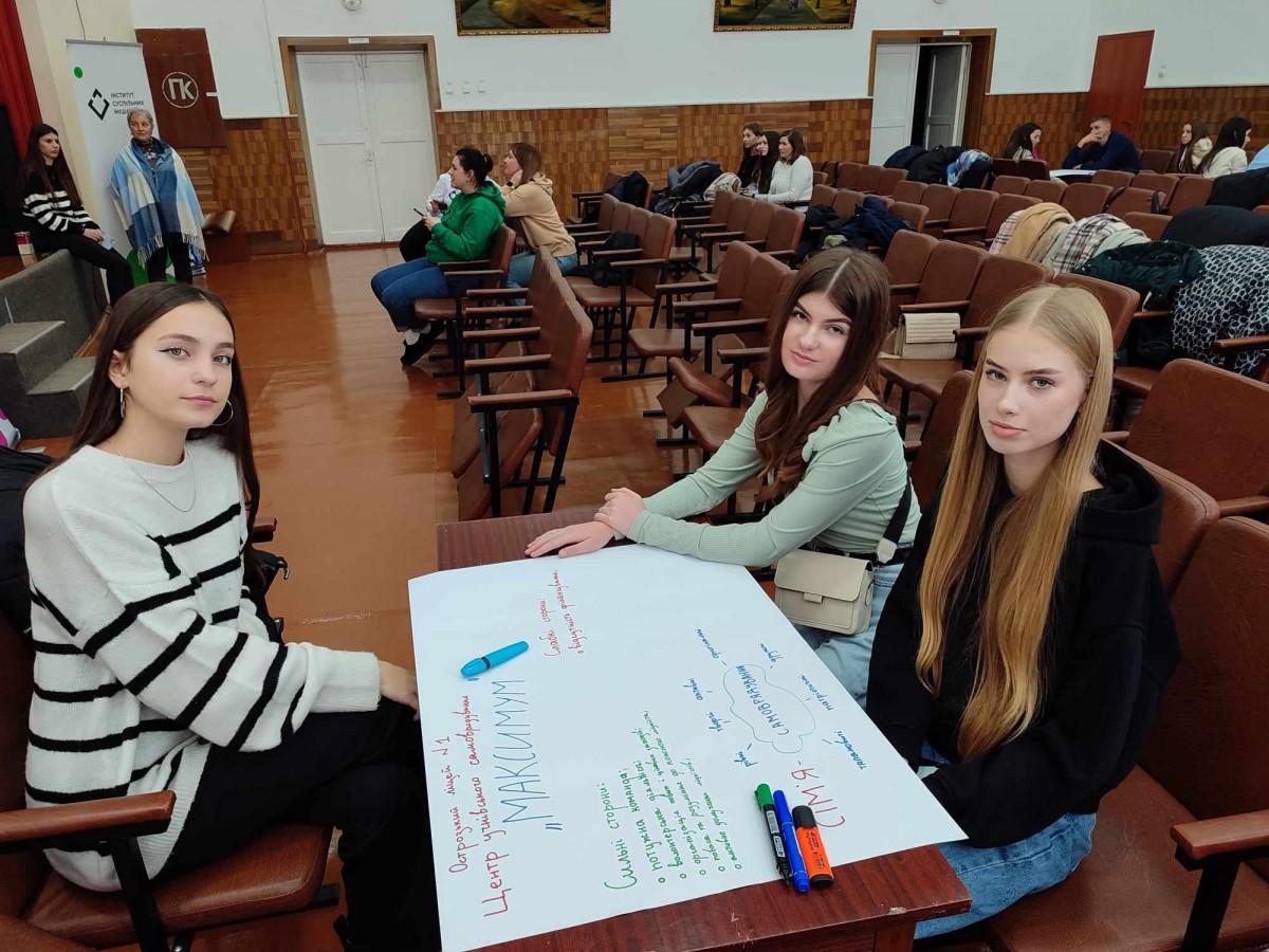 02 грудня 2023 року, представники учнівського самоврядування "МАКСИМУМ" Острозького ліцею №1 Крутій Яна, Майор Наталія, Слободян Анастасія та координатор Лідія Чумак стали учасниками першого тренінгу проєкту «Успішна школа через ефективне самоврядування», який реалізовується в рамках програми “Мріємо та діємо”, що втілює Інститут Суспільних Ініціатив / Society Initiatives Institute.