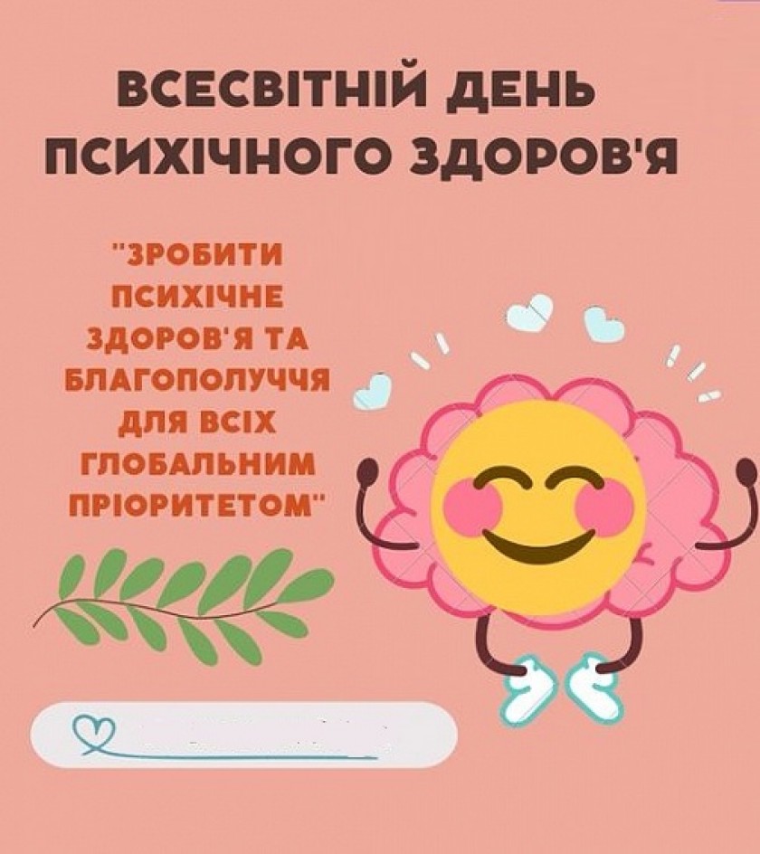 Щорічно, 10 жовтня, відзначається Всесвітній день психічного (або ментального) здоров’я. Ментальне здоров’я є важливою складовою психофізичного розвитку здобувачів освіти, що поєднує здоровий дух, гарне фізичне самопочуття та здорову психіку людини.