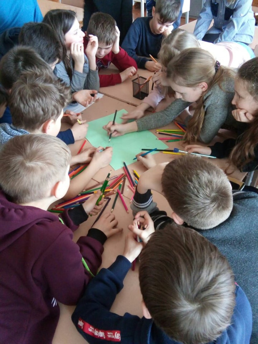 З метою розвитку групової взаємодії, атмосфери довіри та взаємоповаги, виховання шанобливого ставлення один до одного та уміння уникати стресових та конфліктних ситуації, 4 березня практичним психологом Тоненчук А.В. та соціальним педагогом Гопанчук В.В. проведено інтерактивну гру для учнів 5-го класу «Я хочу з тобою дружити». Під час заняття учні розкрили свої позитивні якості та індивідуальність, усвідомили цінність кожного члену колективу. Школярі вчилися знаходити вирішення проблемних ситуацій, розвивали позитивні установки у спілкуванні та навички розв’язання конфліктів.