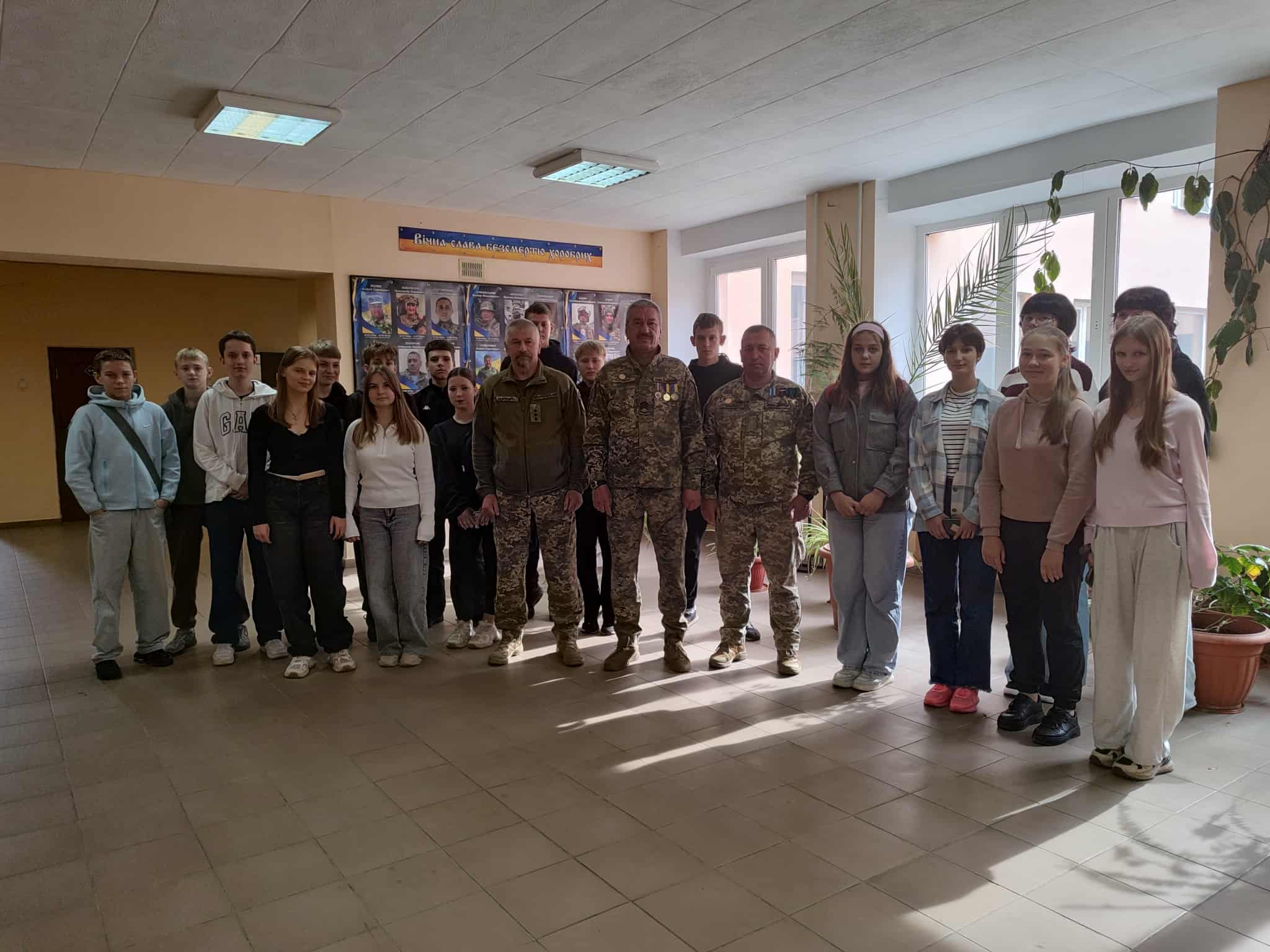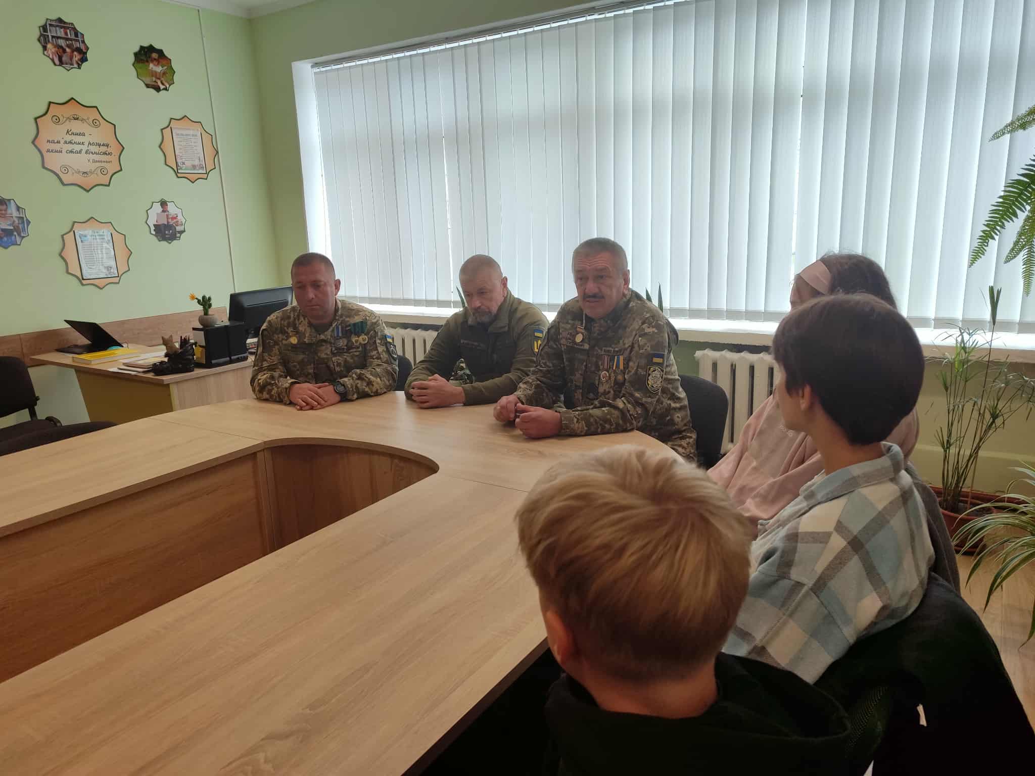 З нагоди Дня захисників та захисниць України відбулася надзвичайно щира та зворушлива подія — зустріч учнів 9-В класу із ветеранами російсько-української війни Миколою Бондарчуком, Сергієм Нікітюком та Олегом Базелишиним. Гості поділилися своїми історіями з фронту, розповіли про нелегкі будні військових та дали настанови школярам. Учні 2-3 класів стали учасниками акції "Долоньки вдячності". Команди учнів  3 класів долучилися до спортивних змагань «Майбутні захисники України». Упродовж дня членами учнівського самоврядування проведено радіогазету "Спасибі захисники".  Ці зустрічі стали не лише нагадуванням про важливість підтримки наших ЗСУ, а й справжнім уроком патріотизму для кожного присутнього.